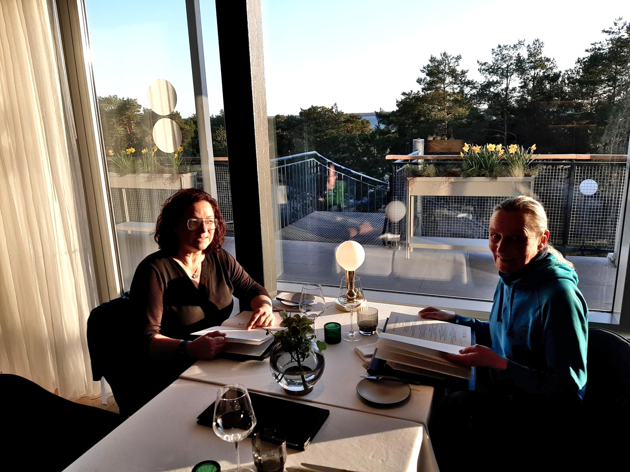 Der Hafen Dragesviken liegt tief in einer Bucht und bietet uns einen wunderbaren Liegeplatz. Auch hier sind wir wieder allein, Sauna und Restaurant sind geschlossen. Luzi hat allerdings schnell zu einer Finnin mit ihrer Tochter Kontakt geknüpft, die sich den Hafen angesehen haben. Und ehe wir uns versahen, sind wir auch schon Gast in Ihrem Fahrzeug und zum nächsten Restaurant gefahren worden. Wobei „nächstes“ hier eine Strecke von 25 km meint. Ich bin nicht gerne mit dem Auto unterwegs, diese Fahrt auf der verwinkelten Straße durch die einsame Natur war aber doch beeindruckend. Biggi hat sogar noch eine Elchkuh am Straßenrand entdeckt. Natur pur, wie man es sich erträumt.