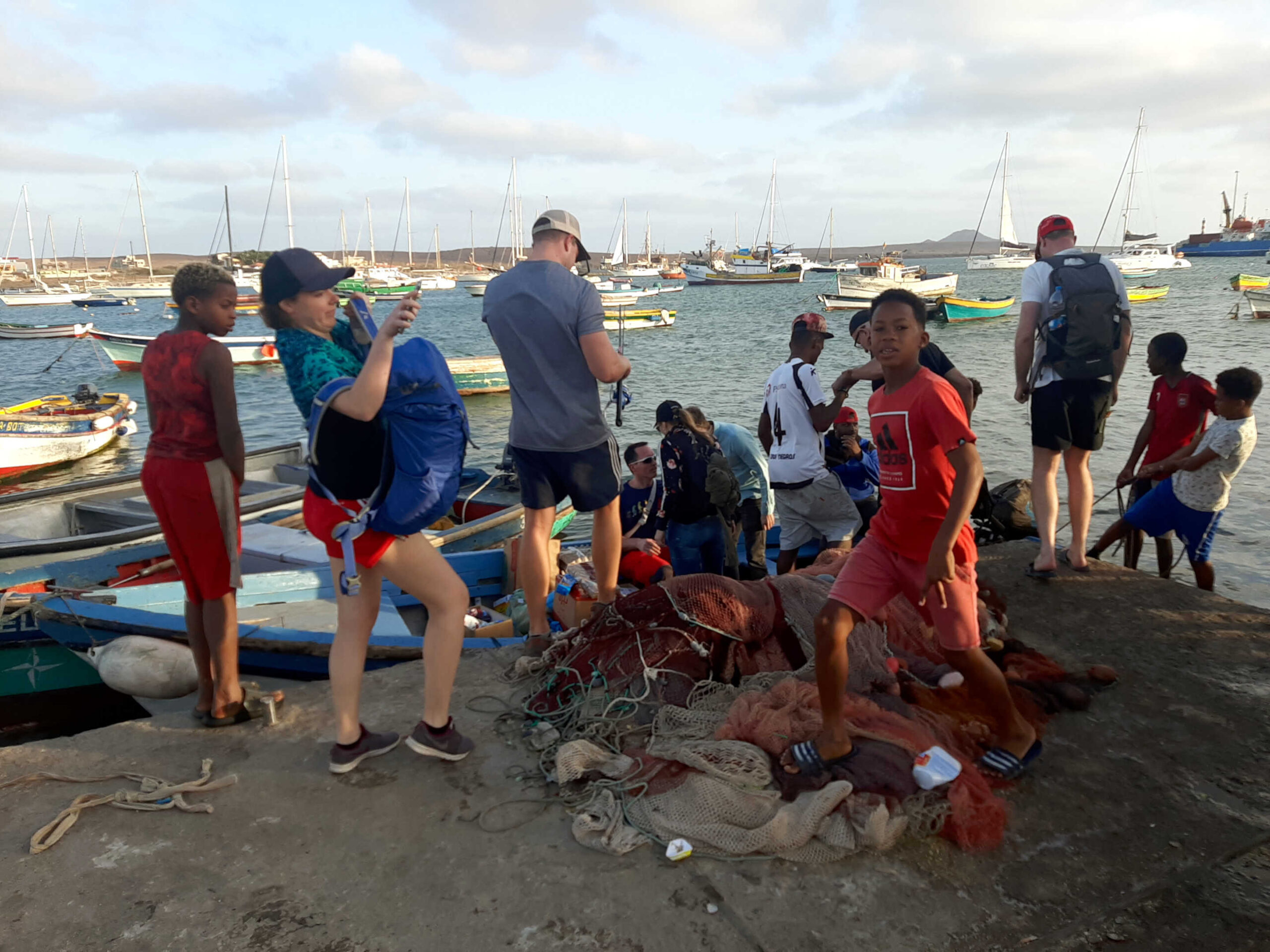 Nach einer schlaflosen Nacht, bei der der Ankeralarm nicht angesprungen und wir tatsächlich noch auf der gleichen Position sind, wird die Crew wach. Der Wind lässt bei Sonnenaufgang nun auch endlich etwas nach. Ich haue mich nochmal eine halbe Stunde in die Koje, ein großer Gewinn ist das für mein Schlafbedürfnis aber nicht. Nach der nächsten Etappe ist aber erst mal Festliegen in der Marina angesagt, die einzige, die es bislang auf den Kapverden gibt.