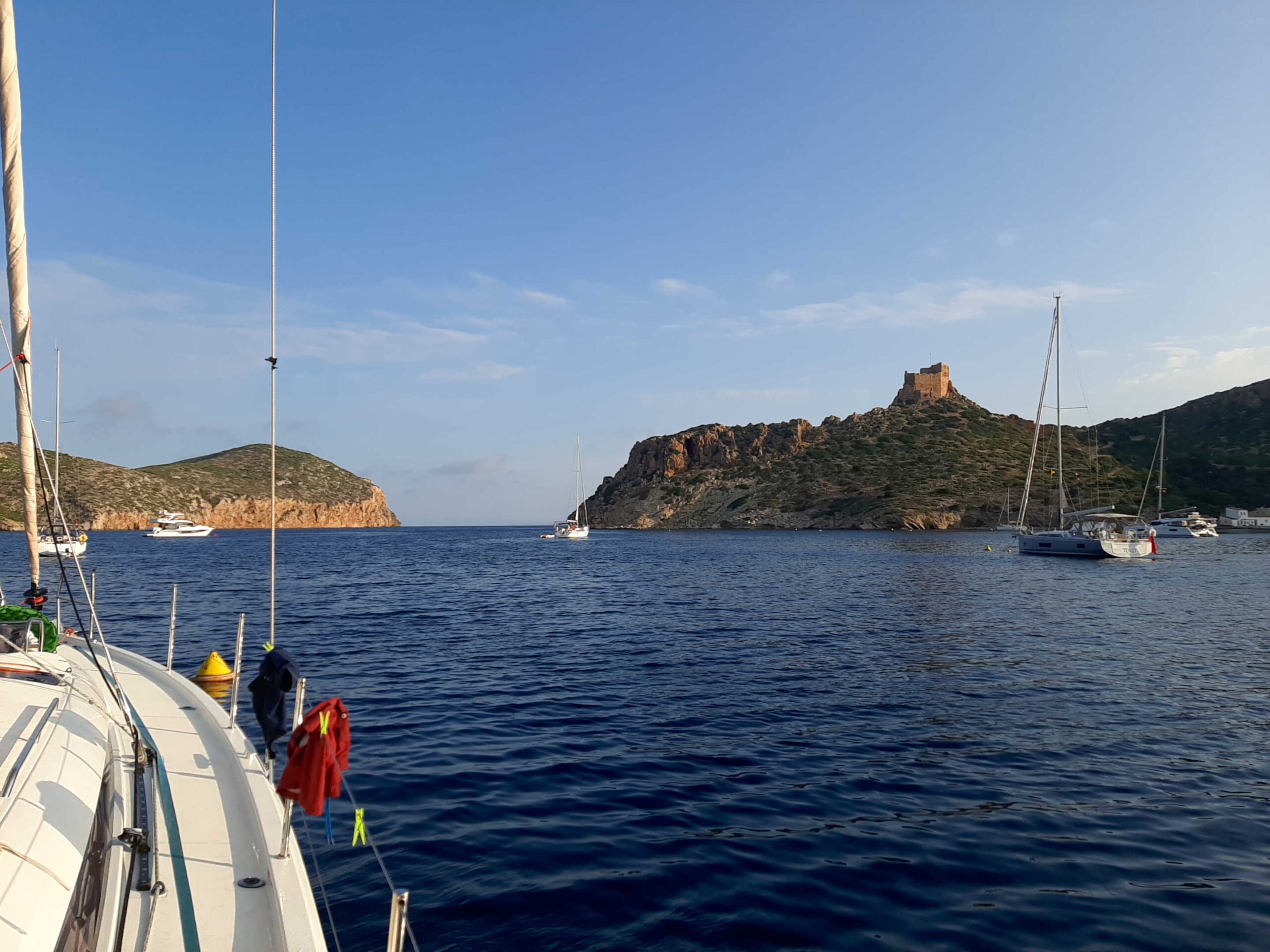 Der nächste Tag dient neben einigen MOB-Manövern dem Abreißen einiger der noch erforderlichen Seemeilen, Ziel ist wie bei mir üblich die südlich von Mallorca liegende Isla Cabrera. Die Boje ist über die offizielle Website reserviert, was in der Hochsaison nicht immer so einfach ist. Der obligatorische Besuch des Kastells mit dem schönen Blick über die Ankerbucht der Insel wird in der Dämmerung absolviert.