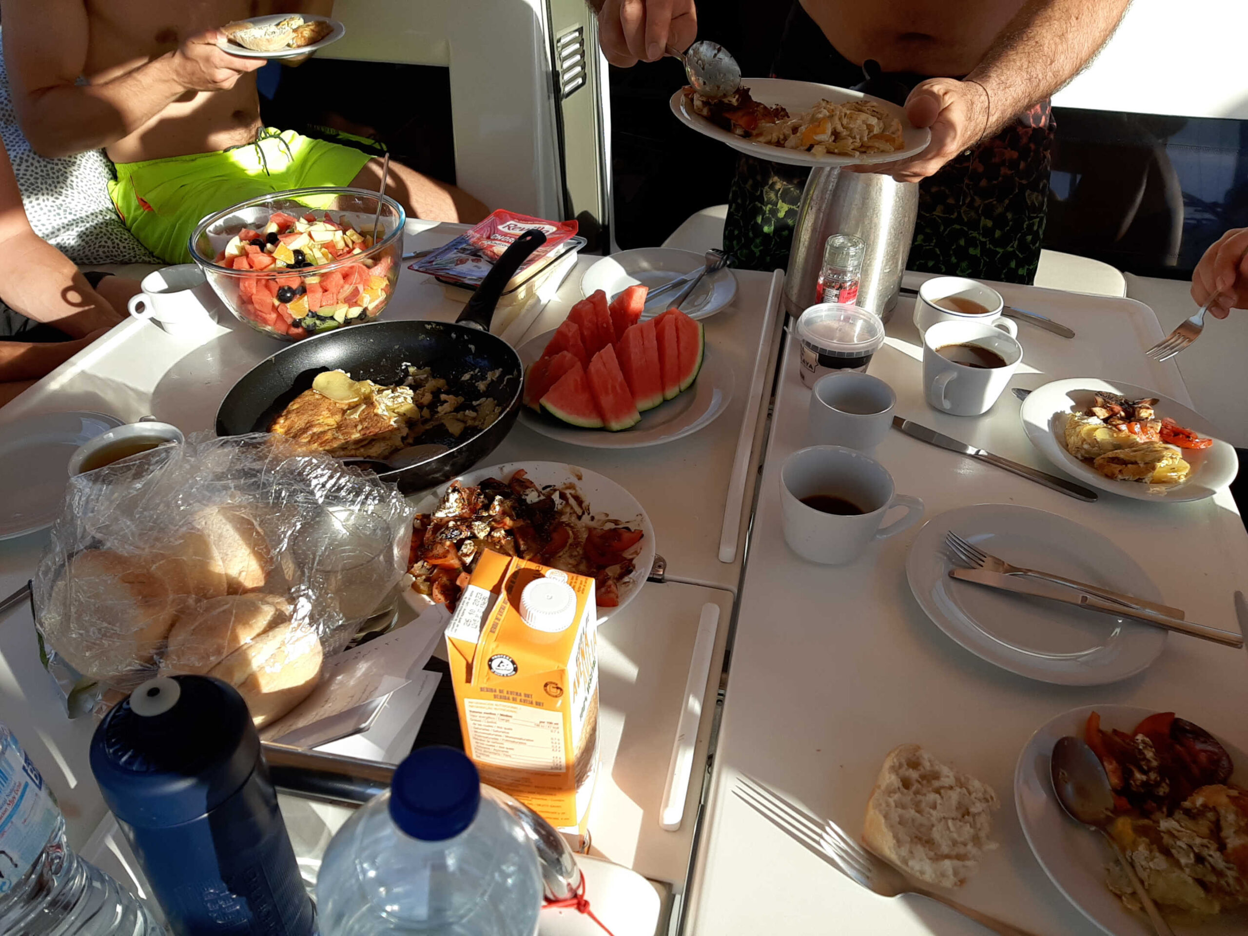 Der Start war durchwachsen. Im vorigen Jahr haben wir den Törnabschluss im Restaurant Pesquero gefeiert. Die vegetarische Paella in der Variante meloso, also mit etwas Soße, war ein Traum. Zudem ist das Restaurant direkt am Hafen und ermöglicht einen tollen Blick über die festliegenden Segelboote. Diesmal allerdings schienen die Preise ordentlich angezogen zu haben, zudem waren die Portionen bescheidener als im Vorjahr. Lecker ist es trotzdem.