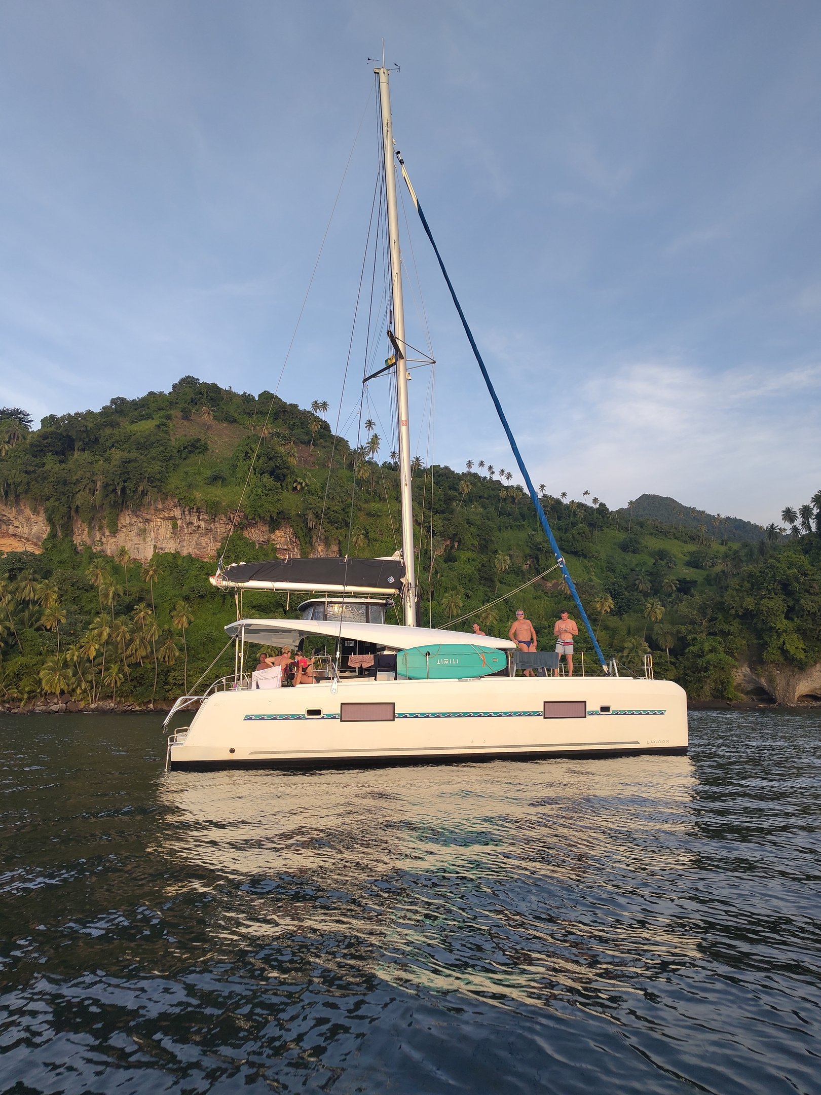 Vorbei an Marigot Bay und dem Hafen von Castries suchen wir uns eine kleine undokumentierte Ankerbucht aus, die Anse Galet. Platz für ein Boot ist vorhanden, so werfen wir unseren Anker und können ins Wasser steigen. Könnten. Denn ein paar Quallen verderben den Schwimmwilligen den Einstieg.